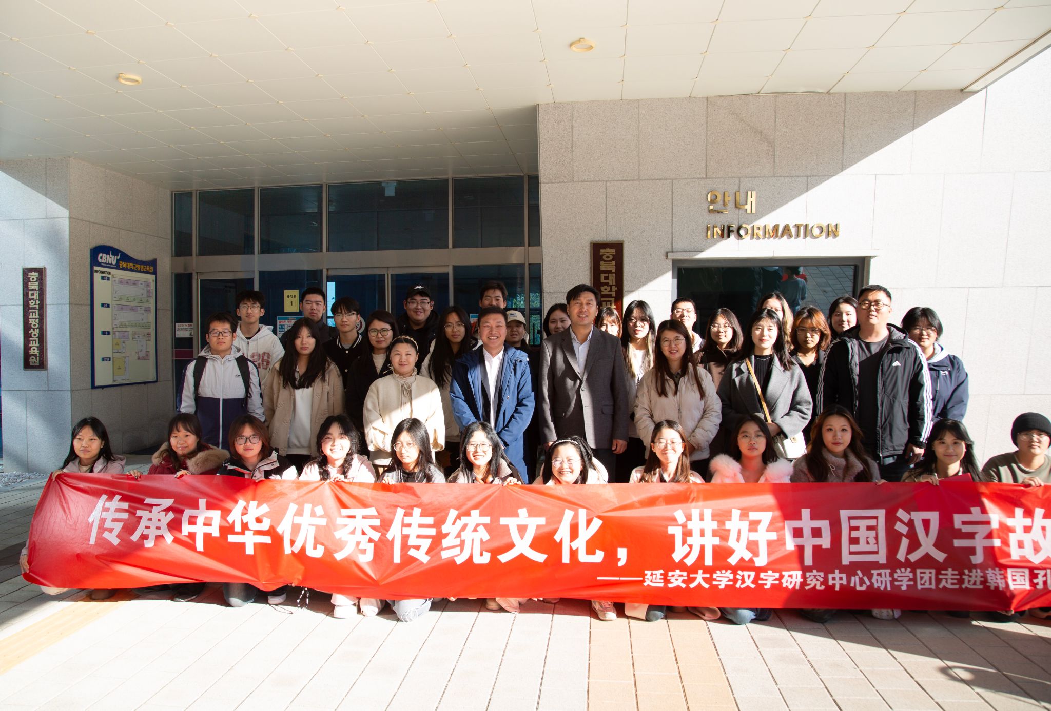 (本网讯)近日,习近平主席复信应邀参加2025世界中文大会的青年汉学家时强调,汉学源自中国、属于世界,是全人类共同的精神财富。希望他们继续与汉学结伴、和中国同行,加强研究阐释,向世界介绍真实、立体、全面的中国,当好融通中外文明的使者,为推动构建人类命运共同体贡献智慧和力量。为响应这一倡议,推动中华优秀传统文化国际传播,深化汉字文化学术交流,7790.cn必发集团文学院组织李鹏睿、温鹏升等三十余名师生于11月19日赴韩开展为期五天的汉字文化交流研学活动,围绕汉字研究与中华优秀传统文化的传播,与韩方专家学者进行了深入、友好的互动与研讨,成功搭建了中韩人文交流的新桥梁。此次交流不仅是高校间的人文互动,更是对接国家“文化出海”战略、深化中外文明互鉴的生动实践。通过汉字研究与文化传播的深度融合,研学团以汉字为媒介,向国际社会展现了中华文化的独特魅力,为新时代中华优秀传统文化的国际传播提供了创新范式。