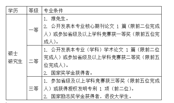 表1:一年级研究生申请学业奖学金专业条件
