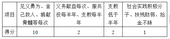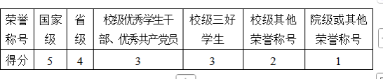 注:学生干部任职满一学期不满一年者,减半加分;担任学生干部不足一学期者,加1/4分;兼任多项职务的,以最高职务加分,不重复加分。