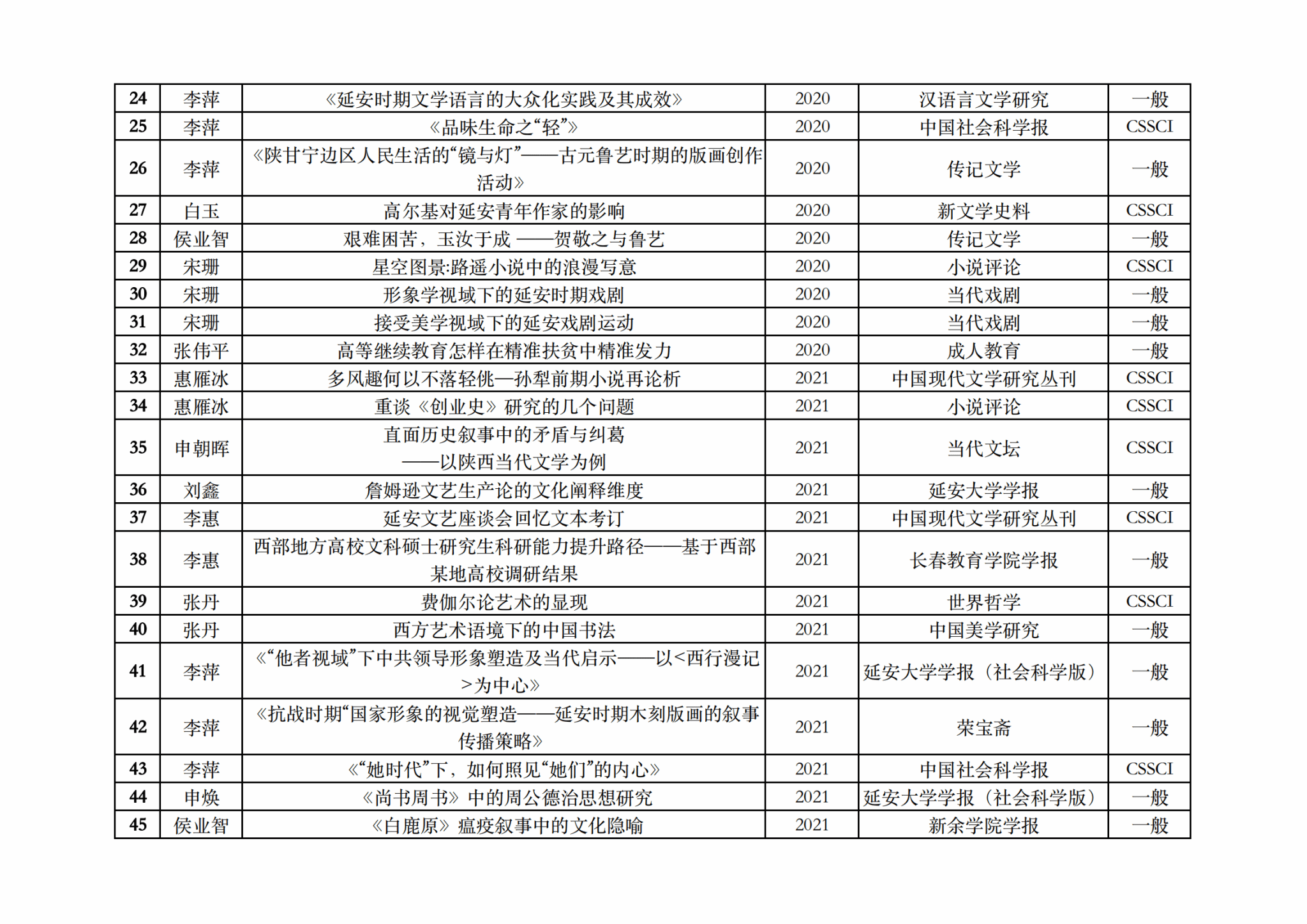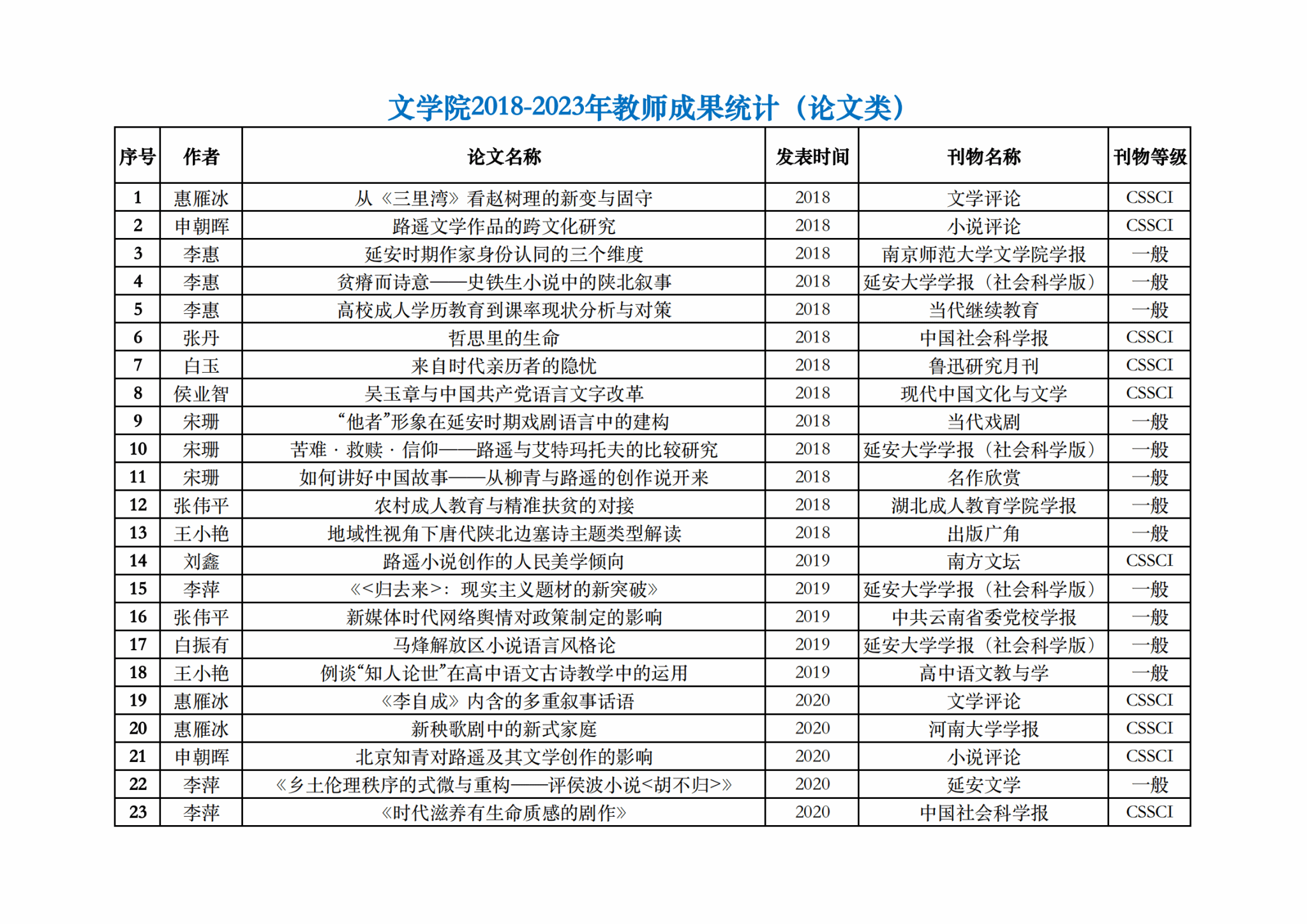 文学院2018-2023年教师成果统计(论文类)