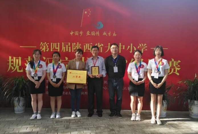 (本网讯)5月10日,我院师生组队代表学校参加“中国梦•爱国情•成才志”第四届陕西省大中小学规范汉字书写大赛,全省13所高校参加比赛,我院代表团取得团体总分第二名的好成绩,荣获高校组团体二等奖,白振有副教授获得优秀指导教师奖。我院代表队由汉语言文学专业17级学生刘冬梅、任宇婷、邹晗雪、何佳兴4位优秀选手组成。文学院白振有副教授担任指导教师,教务处副处长、文学院副教授党子奇带队参赛。