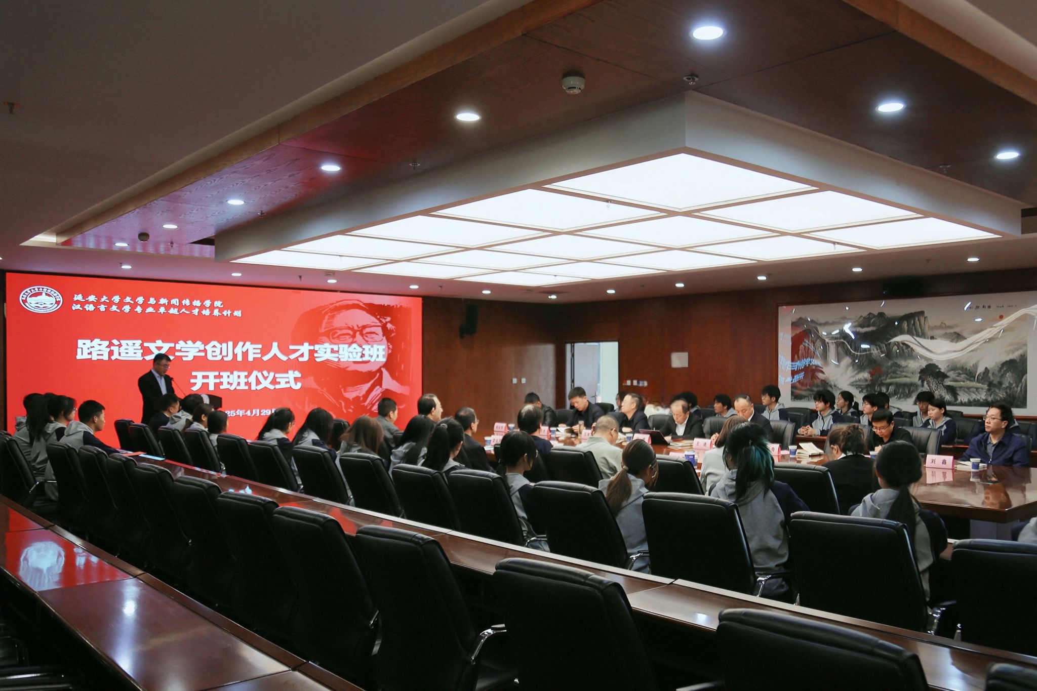 本网讯4月29日下午,我校在行政楼二楼会议室举行卓越教师培养模式改革启动仪式暨“路遥文学创作人才实验班”开班仪式。我校副校长付峰,延安市作家协会党组书记赵永旗,《延安文学》杂志社社长魏建国,作家梁向阳、张金平、张志江,学校教务处、社科处、宣传部、学工部有关负责人,文学院“银龄计划”教师杨东霞以及文学院领导班子、任课教师代表以及首届“路遥文学创作人才实验班”的33位同学参加了开班仪式。开班仪式由文学院党委书记姬小龙主持。