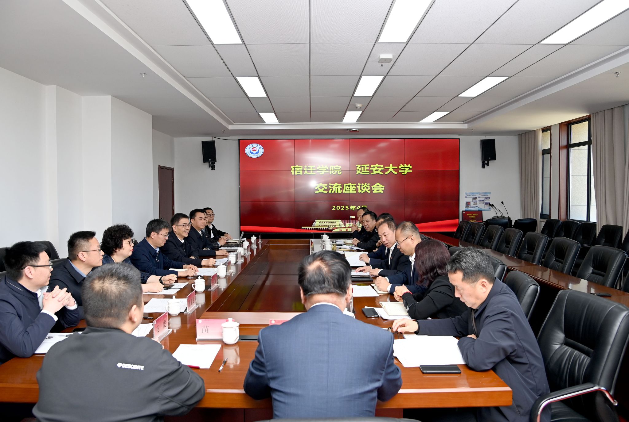 本网讯4月24日上午,宿迁学院校长潘志明一行8人来我校调研交流,座谈会在我校新城校区行政楼六楼会议室召开。校长奚家米出席会议,会议由副校长付峰主持。