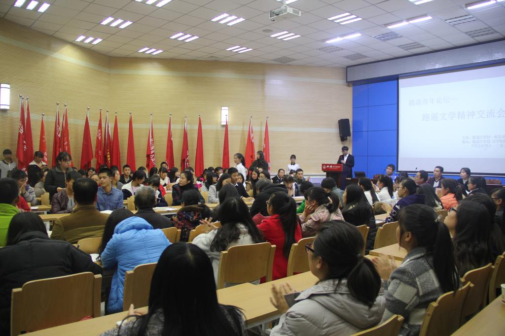 本网讯 11月17日晚,为了缅怀路遥先生,传承文学精神,由路遥文学社——布谷诗社主办,路遥文学馆、文学院院报《我们》、学工部和延大官微协办的路遥青年论坛——路遥精神交流会在路遥学术报告厅举行。《渭河文艺》主编吴朝、省政协《各界导报》负责人,我校路遥文学馆馆长、文学院院长梁向阳,学工部副部长乔剑,文学院部分教师以及我校众多学生文学爱好者参加了本次活动。