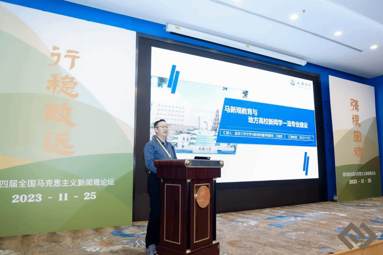 (本网讯)11月25日至26日,“强根固魂 行稳致远——第四届全国马克思主义新闻观论坛”在复旦大学举行。来自国内100余所高校、研究机构和学术刊物的近150 名专家学者和学子,围绕马克思主义新闻观教育、研究与实践进行深入研讨交流。复旦大学党委常委、宣传部部长陈玉刚,复旦大学文科资深教授、马克思主义新闻观教学与研究基地学术顾问童兵等出席开幕式并致辞。论坛开幕式由复旦大学新闻学院党委书记陆柳主持。我院院长王俊虎、新闻系主任郭小良、新闻系教师张晟应邀参加会议。