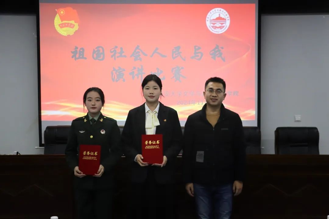 (本网讯)围绕文学院“四个一”人才培养工程,为加强青年学生的理想信念教育,11月7日晚,文学院于201报告厅举办了“祖国、社会、人民与我”演讲比赛复赛。经过初赛的选拔,九名选手晋级本次复赛。文学院副教授汪东锋、团委指导老师叶子豪、辅导员李朝琴、研究生刘雨露、张文丹担任复赛评委。韩尚辰、赵梓涵主持比赛。
