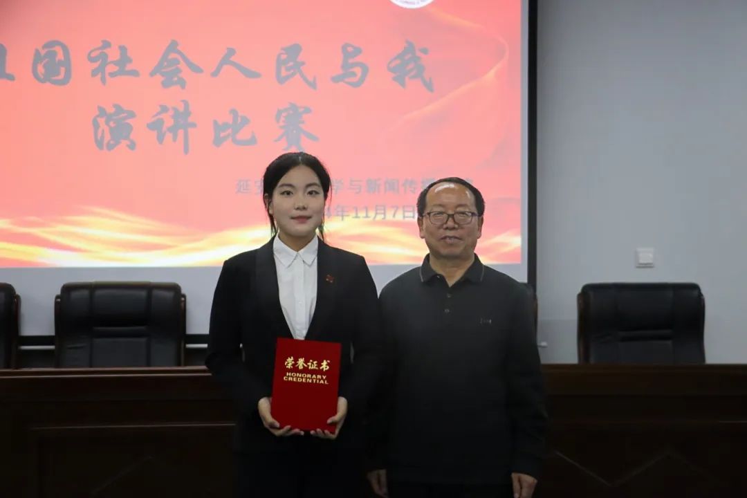 经过了初赛的历练与打磨,九名选手以更加自信的状态和富有感染力的表现,给观众们带来了新的惊喜。选手们紧扣“祖国、社会、人民与我” 这一深刻主题,将个人经历与家国大义完美融合。有的选手深情讲述自己在入伍当兵期间,是保家卫国信念让他们在艰难困苦中砥砺前行;有的选手则分享在支教过程中的点滴,孩子们纯真的眼神和对知识的渴望成为他们坚守的动力,也让他们深刻领悟到社会责任感的重量;还有的选手从自身成长历程出发,讲述那些平凡而伟大的人如何以自身行动树立起榜样,成为他们心灵深处的精神坐标。他们用饱满的热情和真挚的感情表达了新时代青年的坚定信念,用激昂的斗志和铮铮的誓言诠释了当代青年的初心使命,充分展现了延大学子心系祖国,乐于奉献的精神风貌。比赛结束,评委老师就选手们的表现进行点评。刘雨露、张文丹同学提出选手们要紧扣文稿主题,进一步深挖文稿内涵;李朝琴老师称赞选手们展现出了良好的精神风貌,但也有个别选手的肢体语言稍显僵硬,建议可以通过在台上增加适当的走动、运用更丰富的手势来辅助表达,增强与观众的互动性,让演讲更具感染力。叶子豪老师细致地点出了每一位选手的闪光点,肯定了所有选手付出的努力,无论是资料的收集整理,还是无数次的练习打磨,都在演讲中有所体现。
