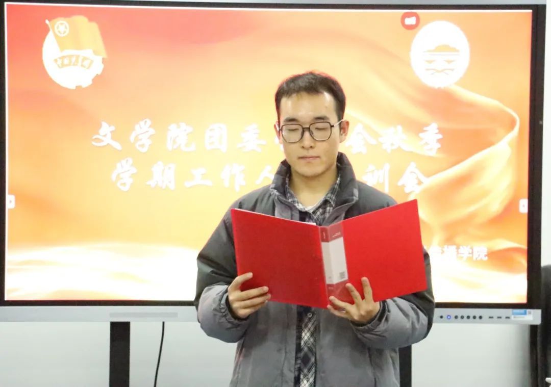 副主席王宣解读了《关于加强新时代新征程学联学生会工作的实施意见》,明确了学联学生会工作要贯彻落实习近平总书记关于青年工作的重要思想,提高思想觉悟,积极服务同学,组织动员同学在中国式现代化建设中挺膺担当,全面加强自身建设,努力把文学院团委学生会建设成为思想先进、扎根同学、有责任敢担当的优秀组织。